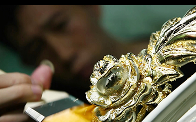 Frandiss(富蘭帝斯)擁有泥雕、彩繪、鑲水晶、打銅釘、手工雕花、拚花鑲嵌工藝、貼金箔/銀箔、手工縫線、手工貼皮等幾十多種上百年曆史的手工工藝,巧妙的運用到家具的製造中,以精益求精的“工匠精神”傳承爵世家範。
